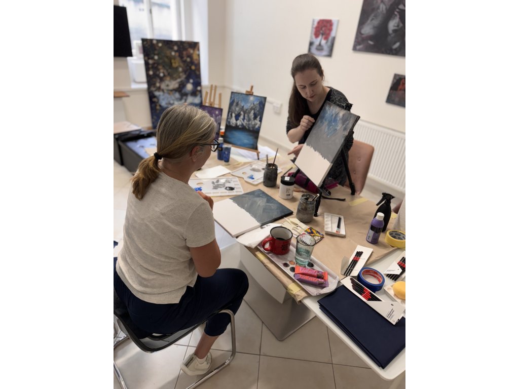 Přijďte si užít pohodové kreativní odpoledne do galerie, kde vás profesionální umělec provede základy práce s akrylovými barvami.